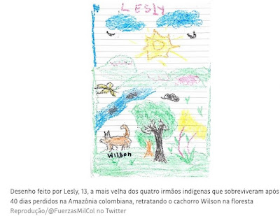"A única coisa que ela [Lesly] esclareceu é que sua mãe ficou viva por quatro dias. Então, antes de morrer, talvez a mãe tenha dito a eles: 'Vão embora que vocês vão encontrar o pai de vocês' (...)", disse Manuel Miller Ranoque, no hospital militar em Bogotá, onde as crianças da comunidade huitoto se recuperam.